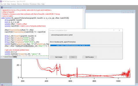 Hi, I'm encountering a function compilation error when I try to use Tony's baseline fitting package. I use Igor Pro 6.37 and the baseline version I'm using is IGOR.6.30.x-3.13.