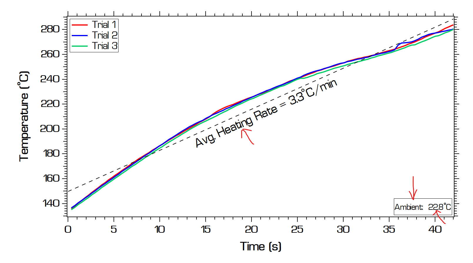 The details of the 3 lines isn't particularly important, just the fact that there are 3 and they average to the correct value. The ambient is called out as an annotation because the X-axis is time, not temperature.