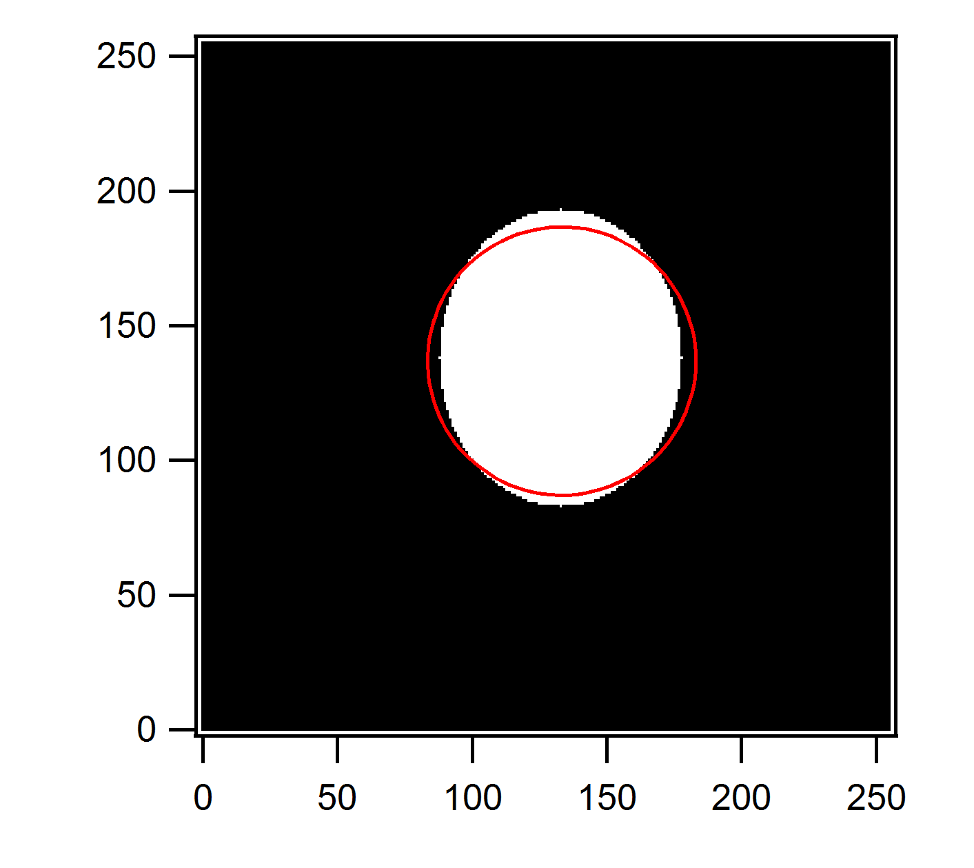 I have a 2D binary value wave (eg, 256*256 pixels wave storing only 0 and 1). The middle area pixels are 1 and the rest are 0. If we view the wave as an image, there should have a circle shape in the center of the image (eg, center is (128, 128) and radius = 50). However, a wave which has a oval in the middle area (a little off circle shape). My question is that is there a function in Igor that I can "fit" the oval in to a circle shape?
