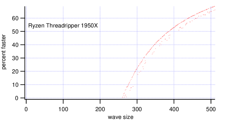 Starting from a wave size of ~(2000, 2000) and bigger the Threadripper gets a consistent gain of 40%, so MatrixOp is nearly 2x faster than Duplicate.