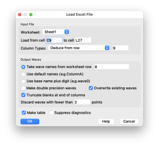 Hi. I would like to load an Excel file programmatically using XLLoadWave. No matter what flags I try, I keep getting the dialog box shown. Is there a way to avoid this dialog? I want to load my file without any user interaction.