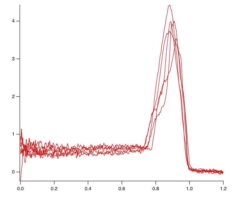 By example, I was setting up an experiment to process a sequence of replicant experiments. I was demonstrating my steps to someone (on a Zoom session). I pulled up the data browser, zeroed in on a wave, and context-clicked to Display the wave. Then, I moved through other data folders, grabbing the equivalent waves in each and doing a drag+drop onto the graph that I had produced for the first wave. The graph built to a display as shown below.