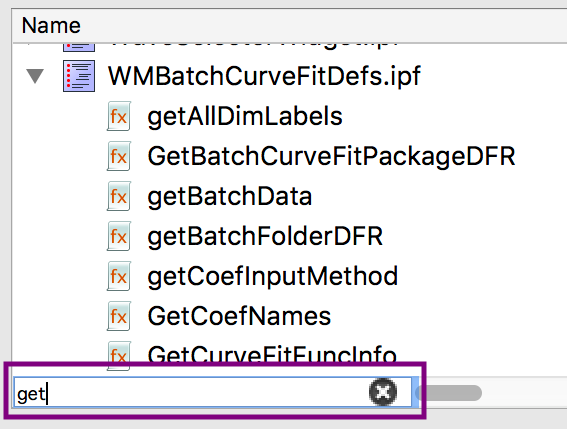 The Procedure Browser, redesigned in Igor Pro® 8, makes it easier to manage procedure windows and find functions, macros, structures, menus, constants, and Proc Picts. Choose Windows→Procedure Browser or click on the toolbar button to open it.