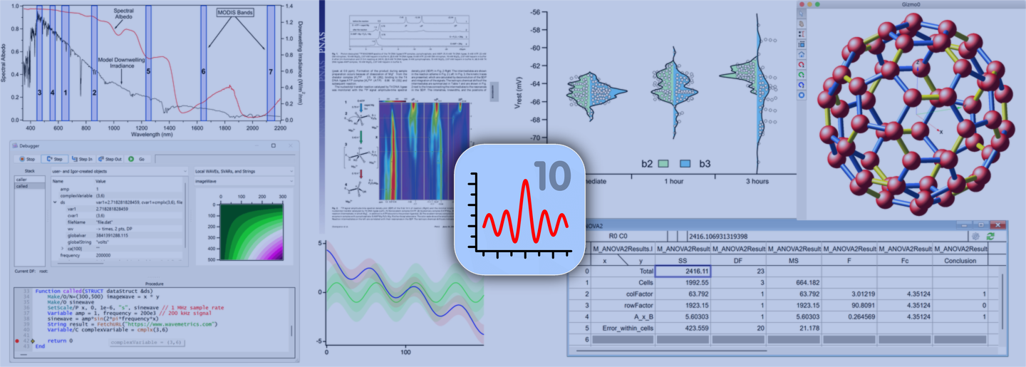 Igor Pro is an interactive software environment for experimentation with scientific and engineering data and for the production of publication-quality graphs and page layouts. Igor has been used by tens of thousands of technical professionals since its introduction in 1989. Here are a few highlights of the newly released Igor Pro 10.