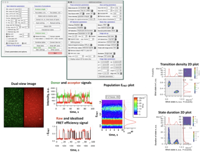 The software was written so that all of the daily single-molecule (and other fluorescent spots) data analysis tasks are accessible at one place: